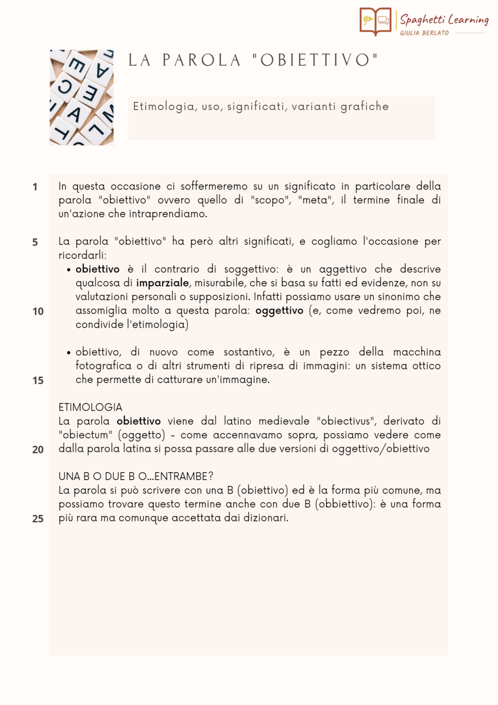 - una piccola introduzione e approfondimento sulla parola "obiettivo"