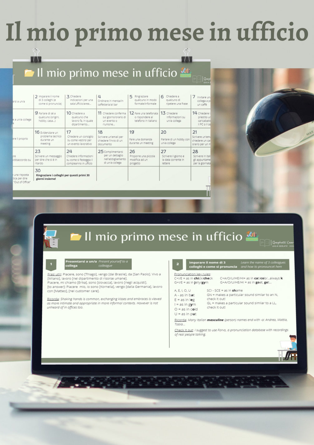 In this full version of the calendar, you can download 30 days of activities to start your working life in Italy/with Italian colleagues.